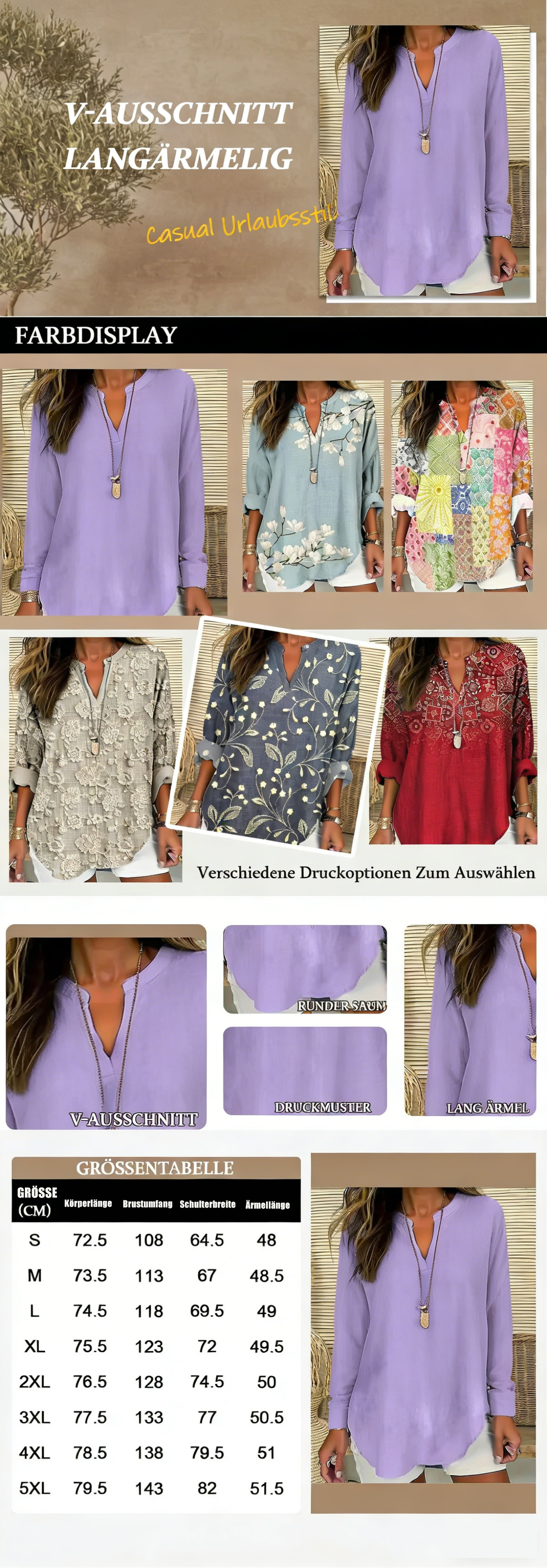 Sommerliches, schlichtes, lässiges und elegantes T-Shirt mit V-Ausschnitt, langen Ärmeln und Blumenmuster